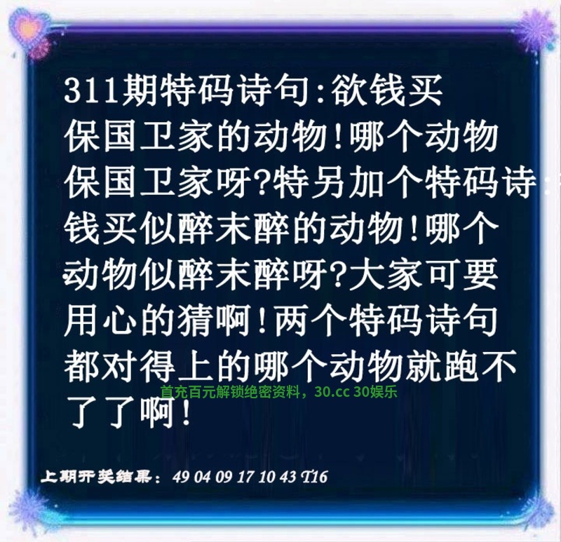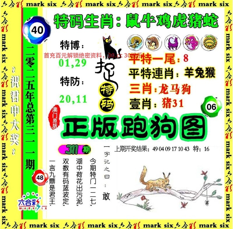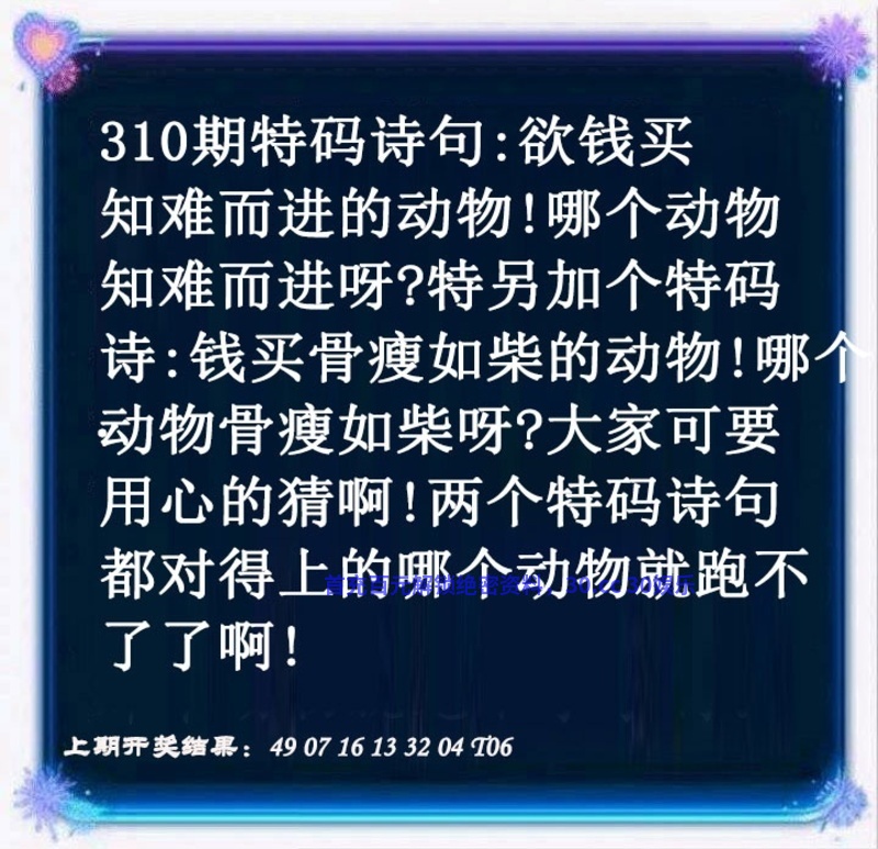| 310期:天地两肖【地肖+龙马】开:虎16准 |