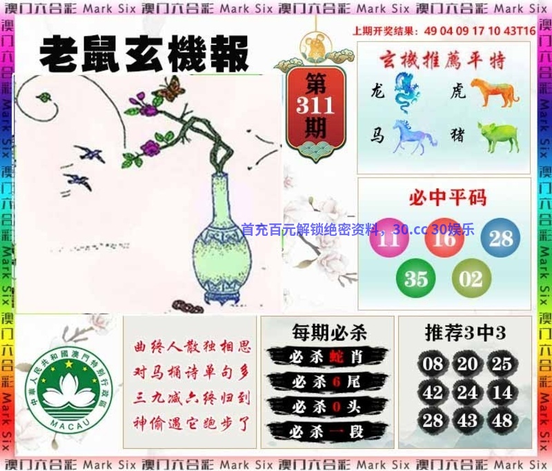 | 309期:稳准三季✨【冬春秋】开:鼠06准 |