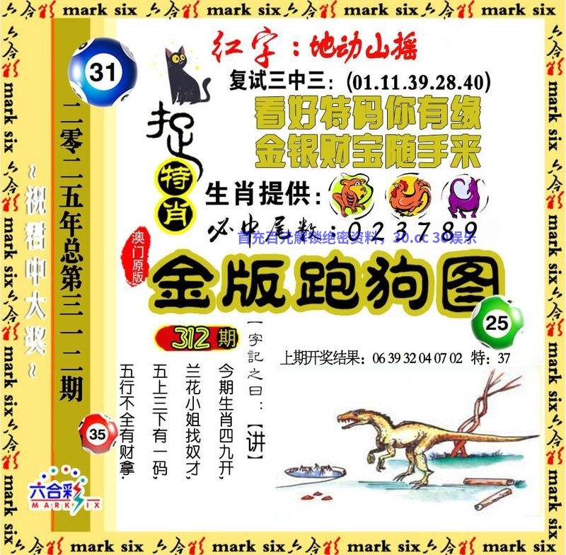 | 309期 | 狗 | 红单 | 5尾 | 开鼠06 |