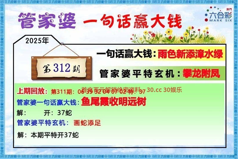 | 311期:暴富单双💥【单单单】开:蛇37准 |